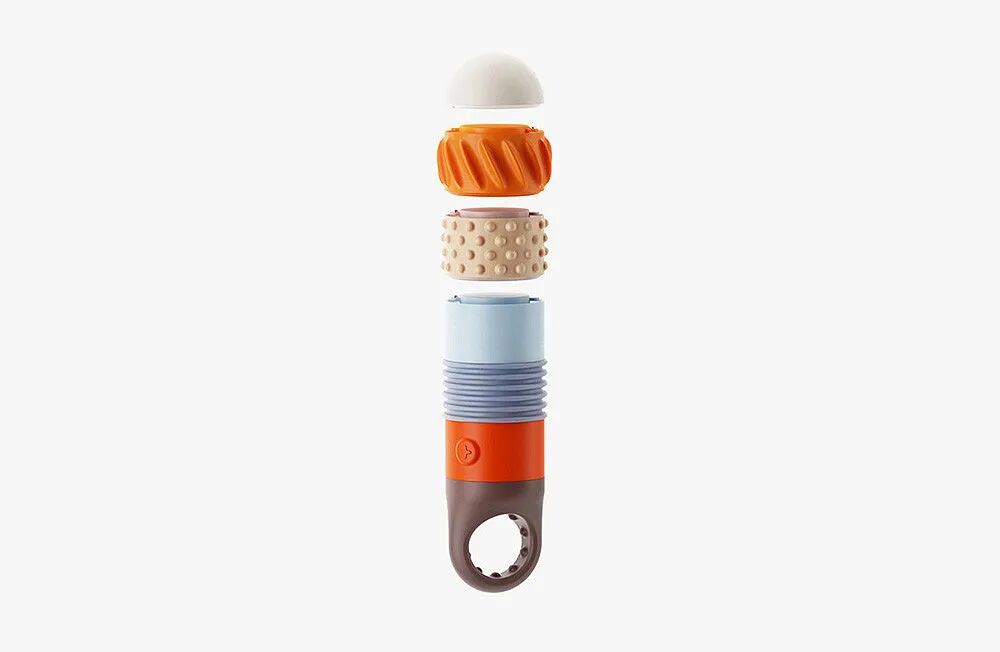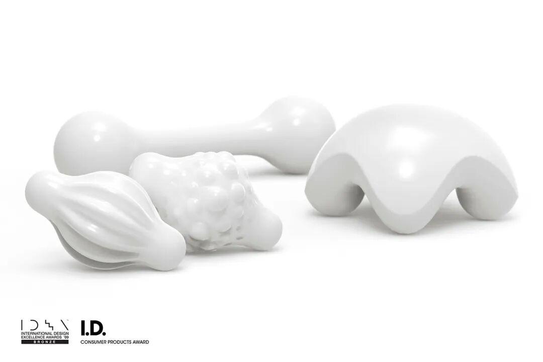 这是一款专为老年人设计的情趣玩具,这套创意调情用具可以用来刺激听觉,嗅觉,触觉和视觉感官,而且对活动能力受限的人士十分友好。玩具包含了医生 play 听诊器,互闻管,可以更换插头的调情棒还有一个器官放大镜。考虑到年长人士可能会被露骨的造型吓退,避免了传统露骨的造型,把玩具的造型设计得更加温和可爱。