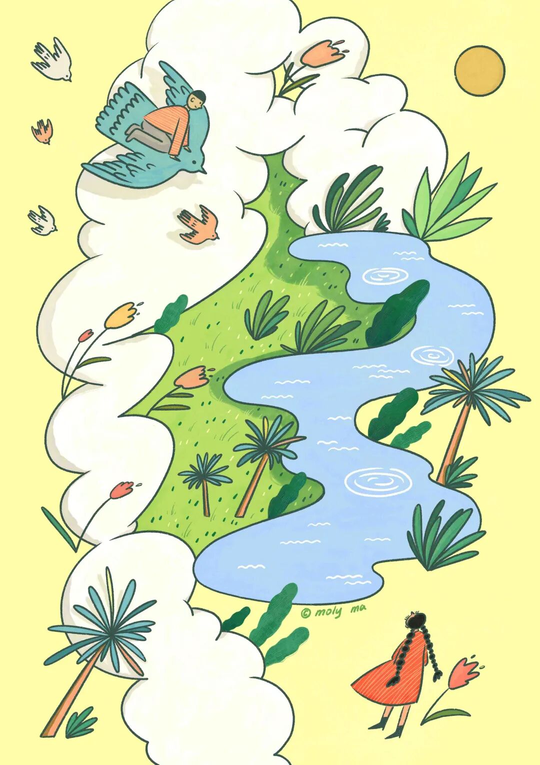 画中的我充满热情,不管遇到多少困难也会朝着插画这块绿洲直奔而去!