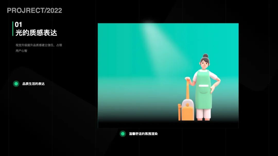 对于背景图的设计,也是有一番心思——通过一缕光线来展示品质生活的表达。