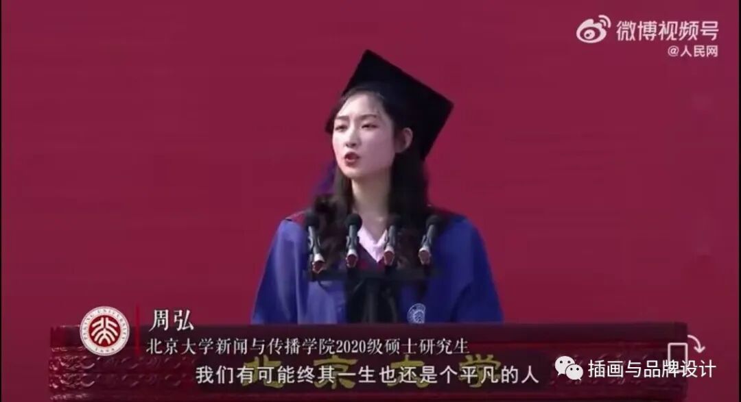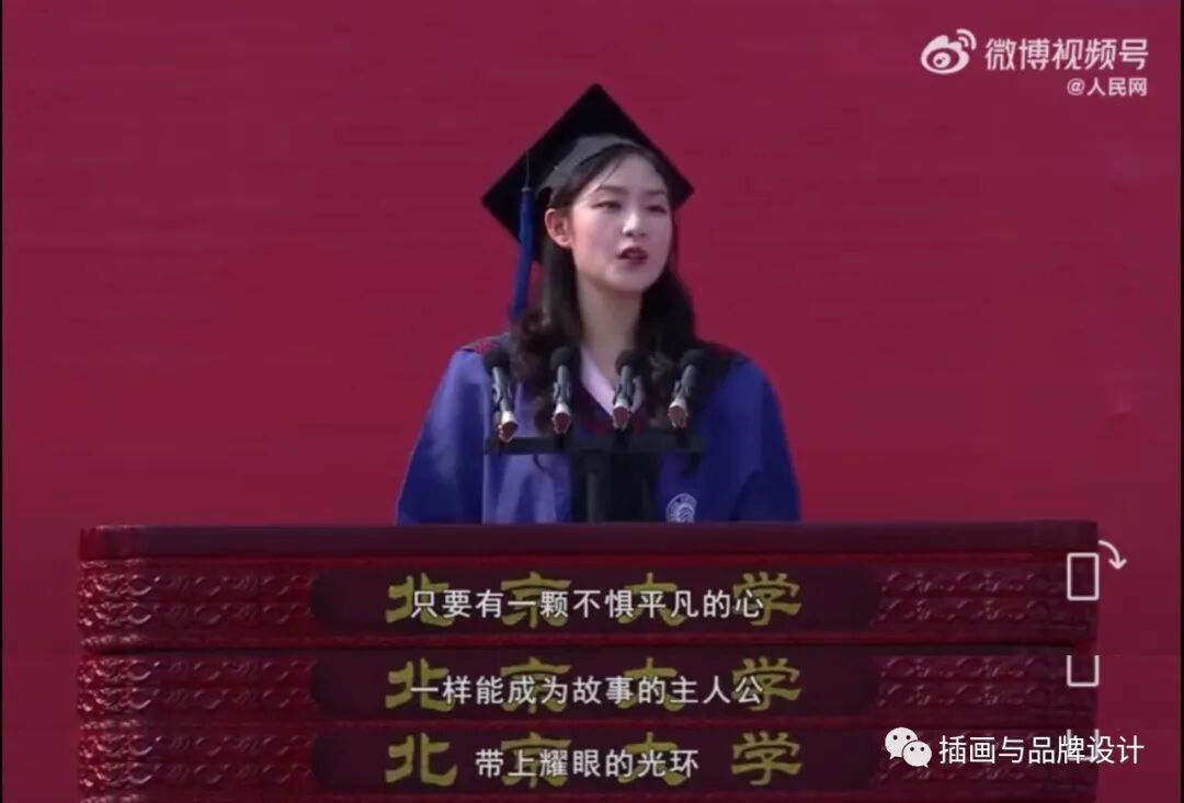 一位学生代表站在中国最高的学府,对着镜头和台下的同学动情地说道: