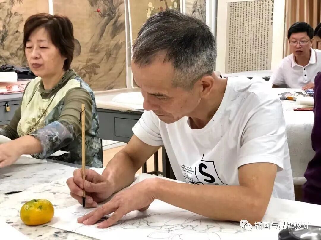只接触过家具橡皮画的潘建华,在老年大学的课堂上,学会了如何拿毛笔,第一次接触画法、结构、方向等专业的说法。