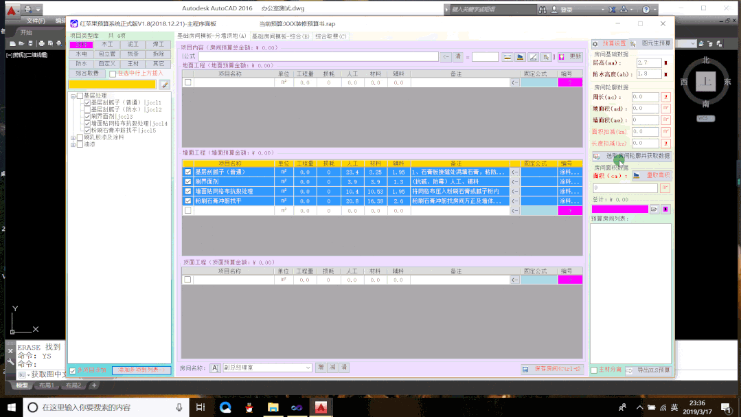 超强预算功能,与CAD图纸结合,自动获取工程量,5分钟即出装饰预算,5秒自动生成合同,5秒出成本分析。
