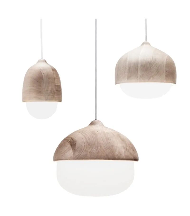 受大自然的启发,Terho 在芬兰语中的意思是“橡子”,简单地指的是自然界中发现的有机且吸引人的橡子形状。天然椴木的温暖和美丽与蛋白石玻璃相结合,使其既现代又永恒。