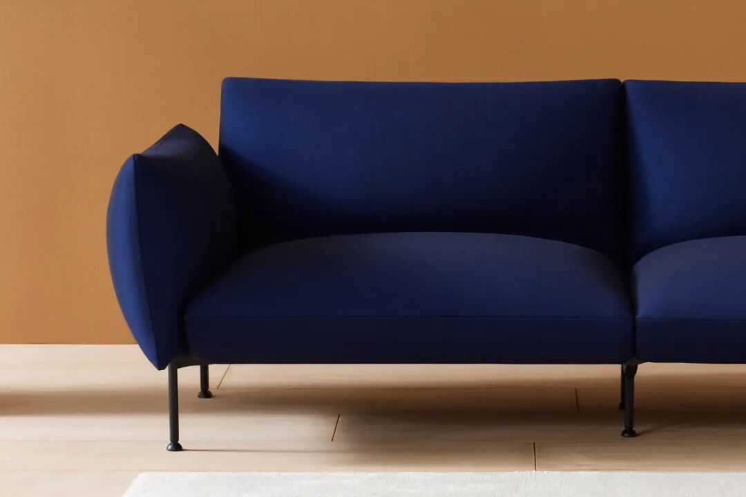 Note Design Studio 对沙发的设计为钢架增加了“枕头般的梦幻缓冲”,有棕灰色、奶油色或蓝色材料可供选择。这些饰面可以与黑色涂漆钢或抛光黄铜的腿相结合。