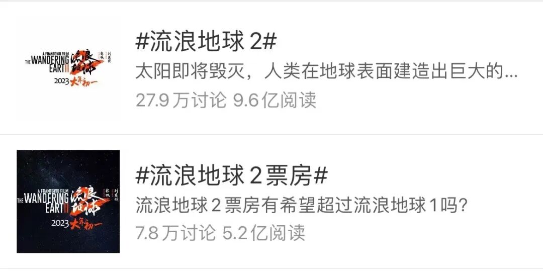 “流浪地球2”微博相关话题数十个,阅读总量达百亿