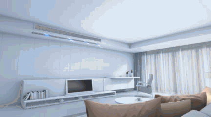 书房空间可以利用进门处边缘的吊顶设计一个出风口,也省了空间。针对那些不想把吊顶做得太花哨的,可以直接将风口装在墙里面,然后做一般的石膏吊顶,但一定要考虑好送风的区域性,尽量保证房间的每个角落都能享受到舒适的风。
