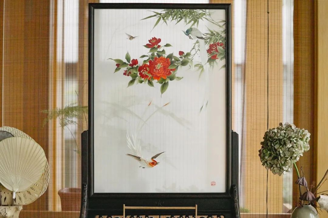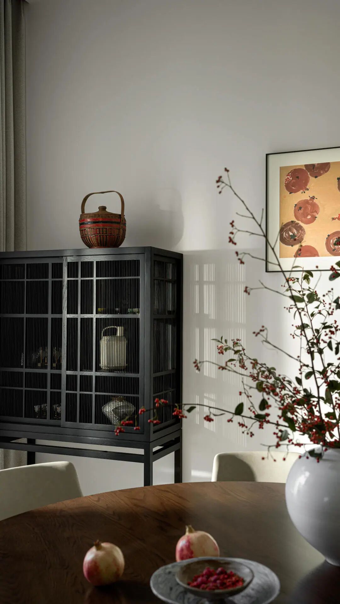 挂画方面,一部分选择了传统的、寓意比较好的中国画,例如餐厅的石榴画便寓意着平安吉祥;另一部分现当代艺术家的画作,让家更具有现代气息。