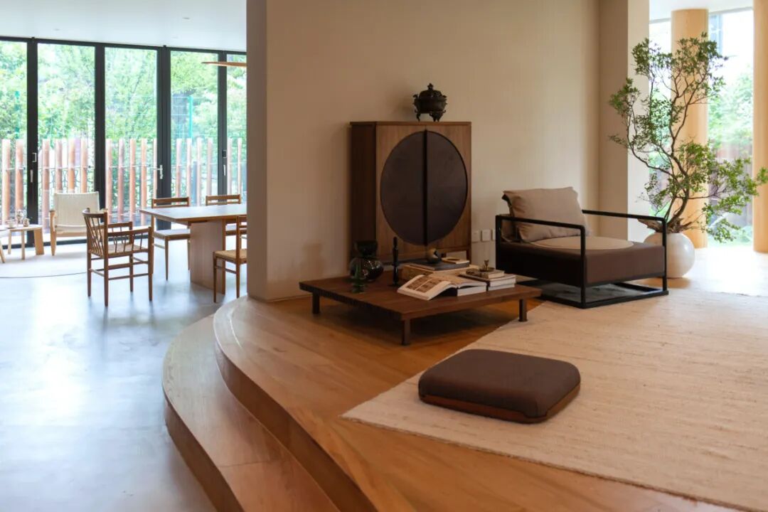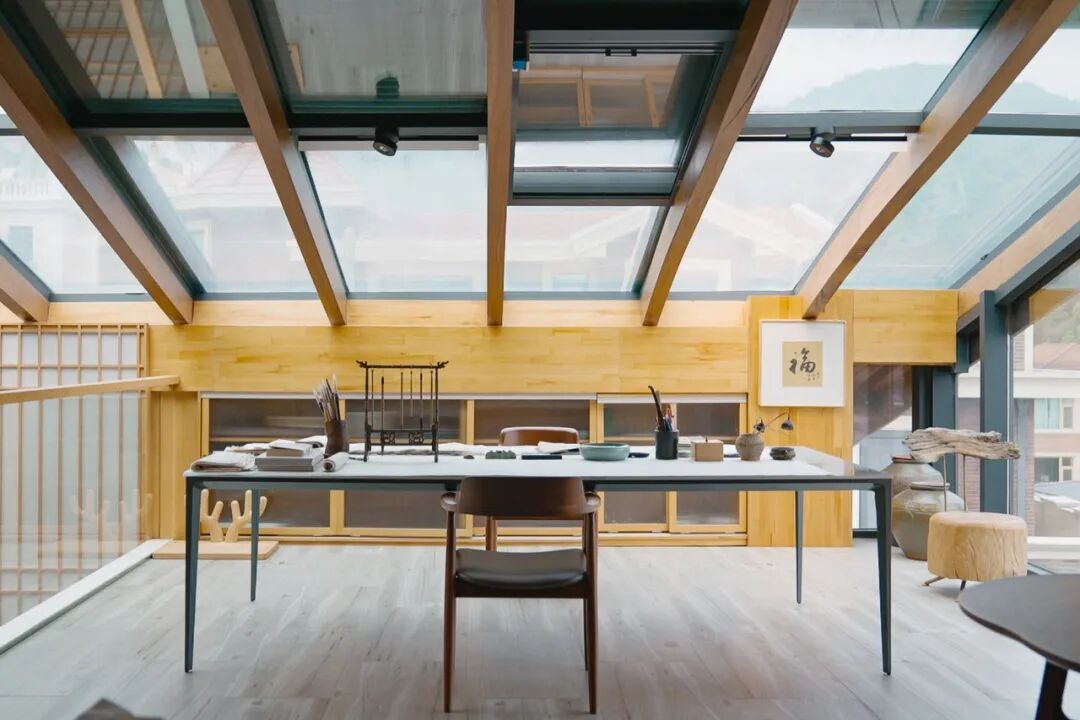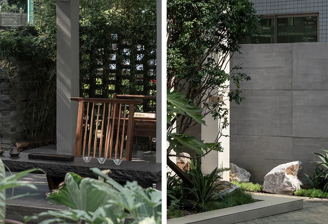 周子鉴没有在院子中间摆放桌椅,而是设置了可供喝茶的木质露台。天朗气清的日子里,与朋友、家人在露台品茶闲谈,听着微风与树叶的低声细语,想必是特别安逸的事情。
