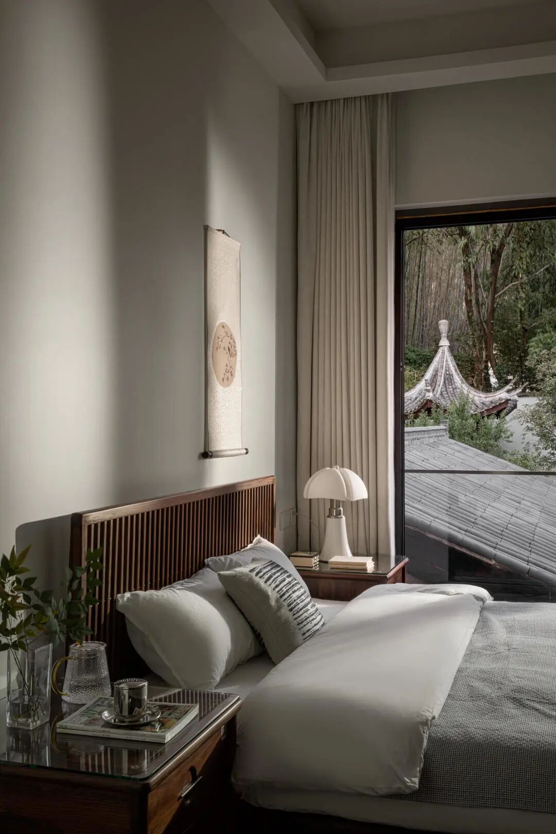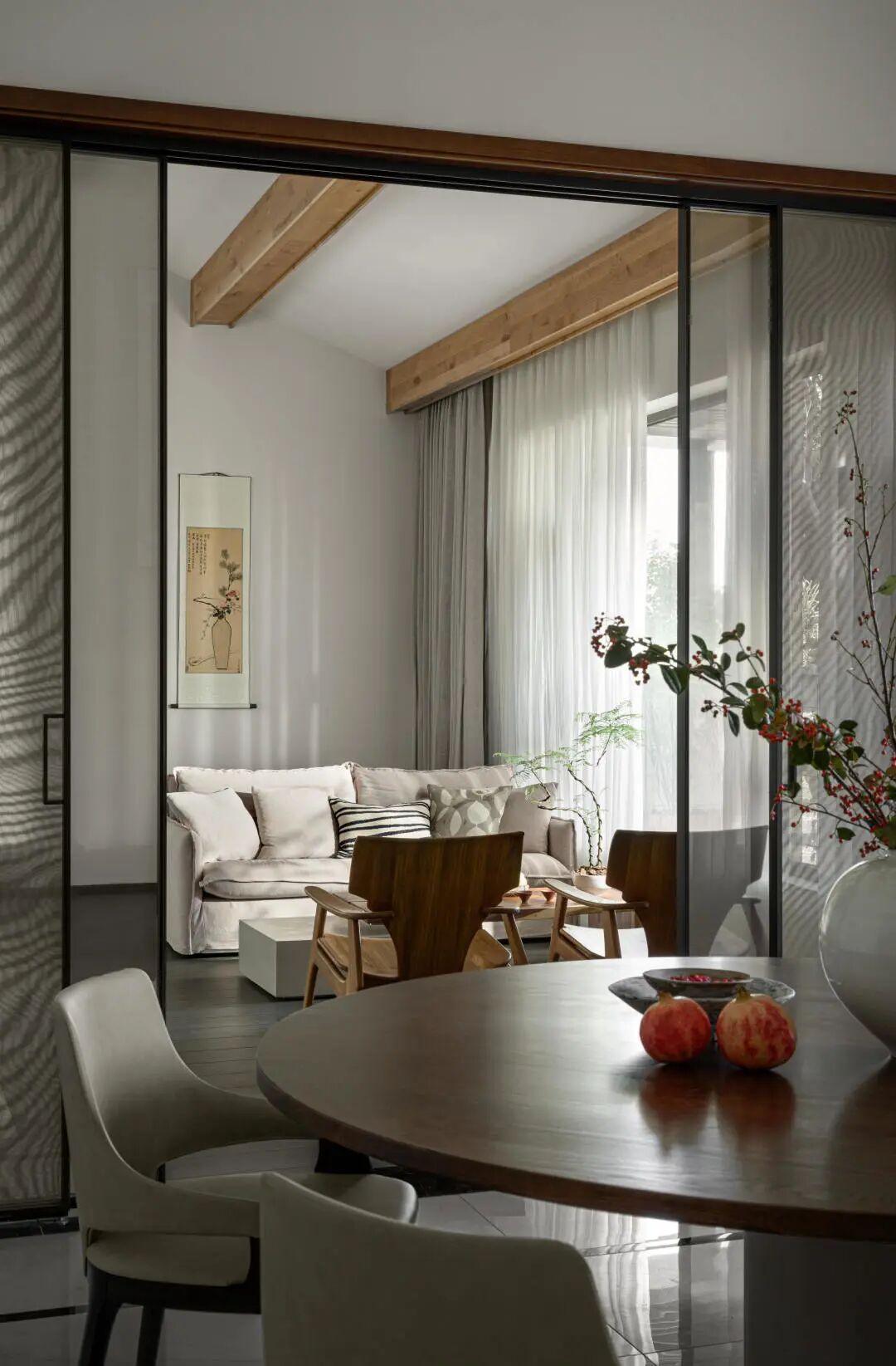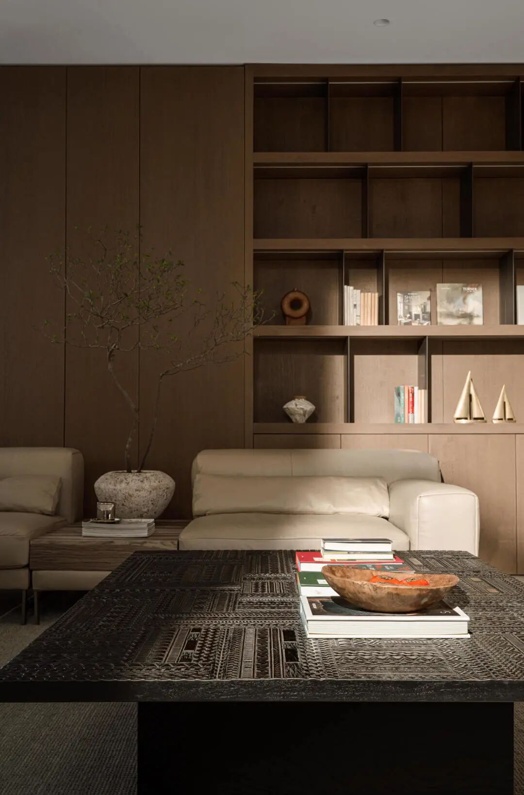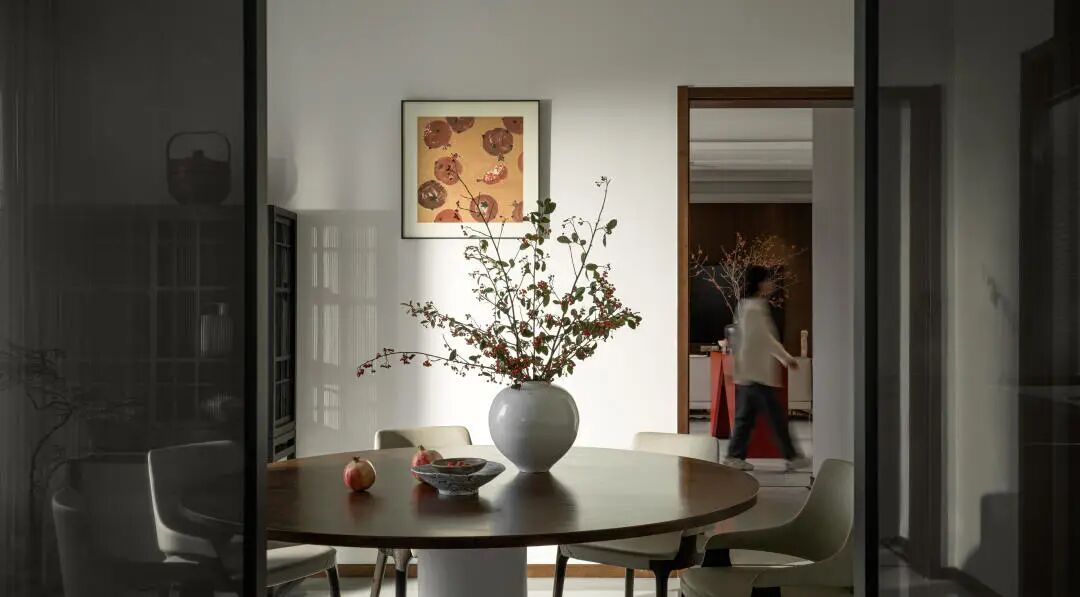 室内追求典雅耐看,大面积留白,将重点放在软装搭配和装饰挂画上。“五六年前我们便决定了这样的整体设计风格大方向,因为设计体量较大,又遇上疫情,直到现在才落地完成。即便如此,当时的设计在如今看来,依旧耐看,并没有过时。”周子鉴说。