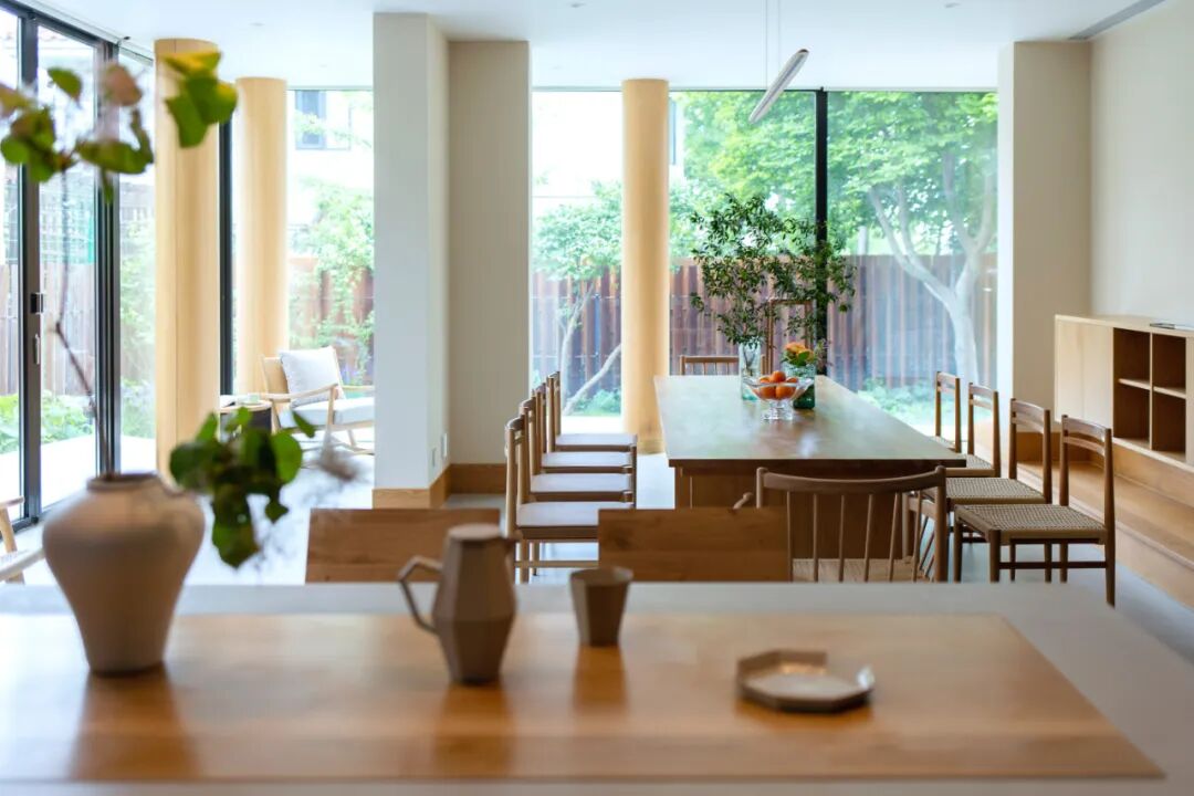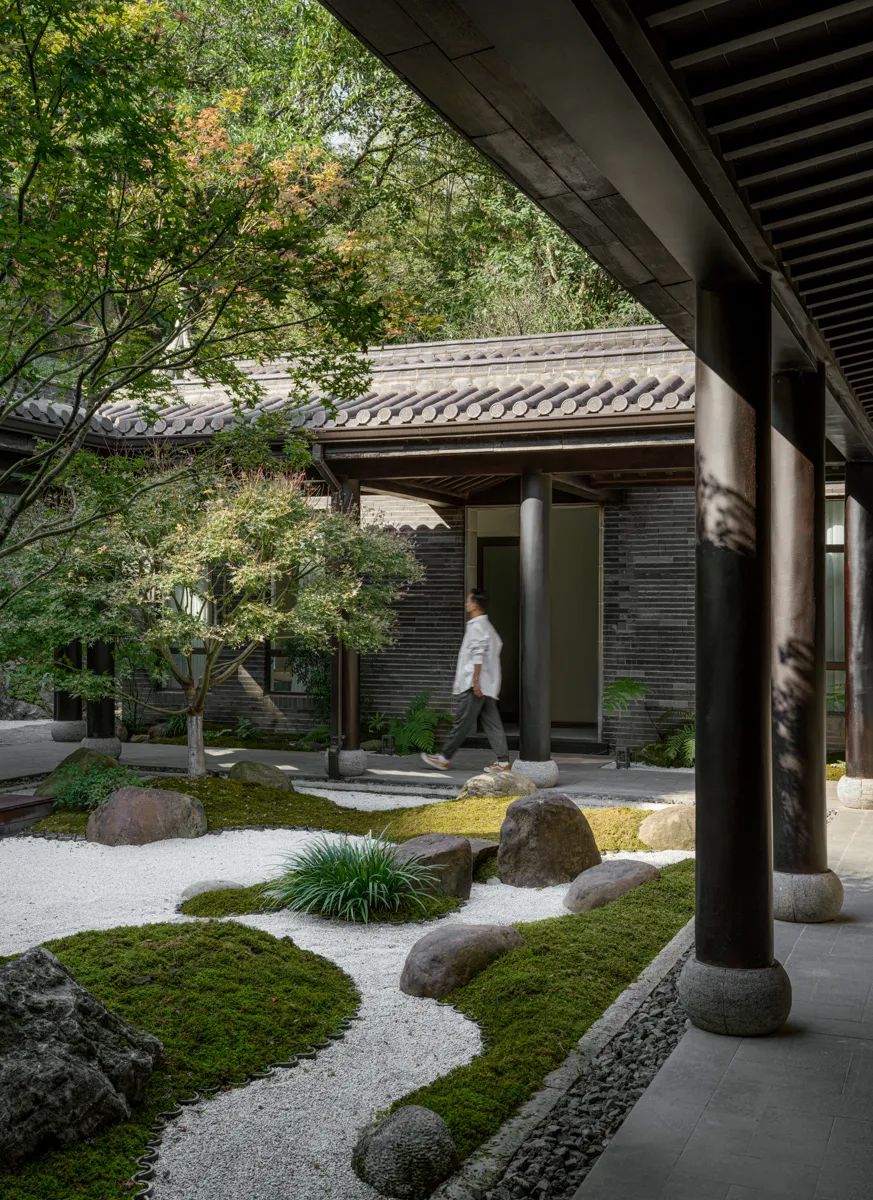 院子的入口处正对玄关,因此特地种植了树木,从屋内向外望,或在院子里往屋内探看时,树木能适当地遮挡部分视线,似隐非隐,体现东方庭院的含蓄之美。