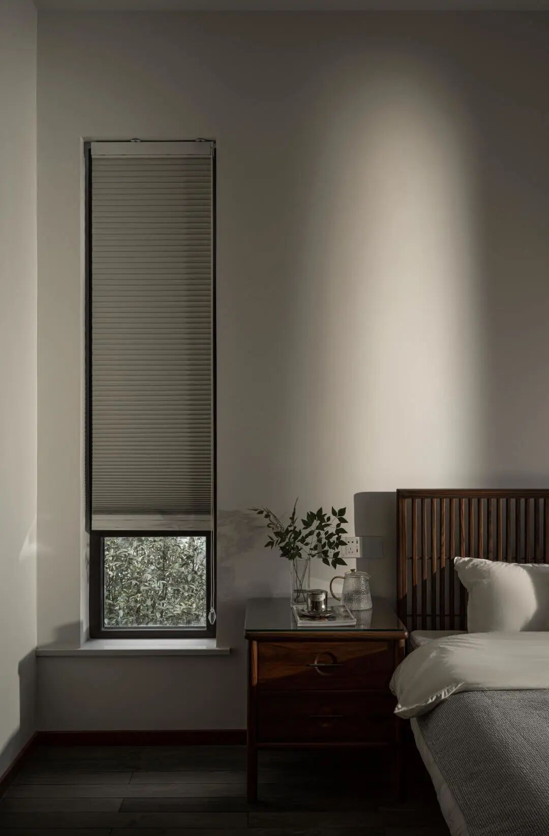 二层的功能相对私密,主卧与儿童房、还有一间安纳非常喜爱的书房,“书房的窗可以看到山景和夕阳,外面还有一棵很大的椿树,阳光洒进来的时候非常美。”