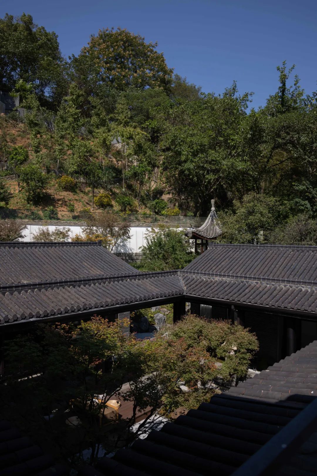 四合院周边山势起伏,树木也多,远看或近赏时,眼前都有景。包围着院子的回廊,不仅联通了室内外,也是回游式地动观院落的通道。