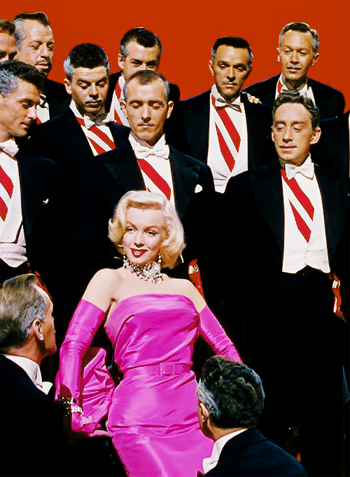 梦露演艺生涯中扮演最多的就是拜金无脑充满肉欲的傻白甜了吧。最经典的一幕除了白裙飞扬,应该就是她在《绅士爱美人》里高歌一曲《钻石是女孩最好的朋友》。