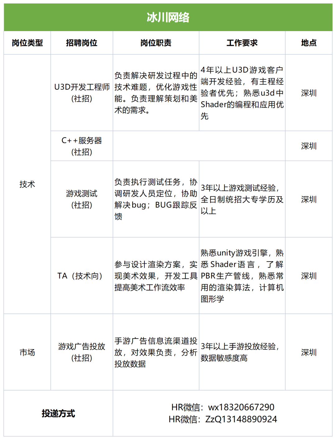 表格内共9个岗位,HR微信:gamehryzq,投递邮箱:job@ourpalm.com