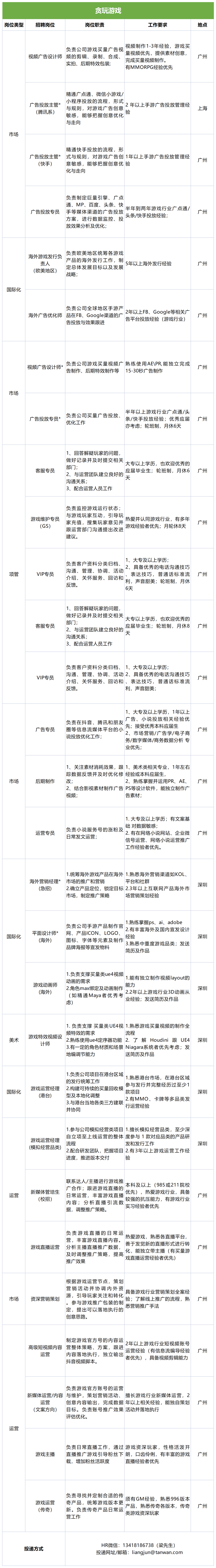 表格内共6个岗位,投递邮箱:hr@taiyouxi.cn