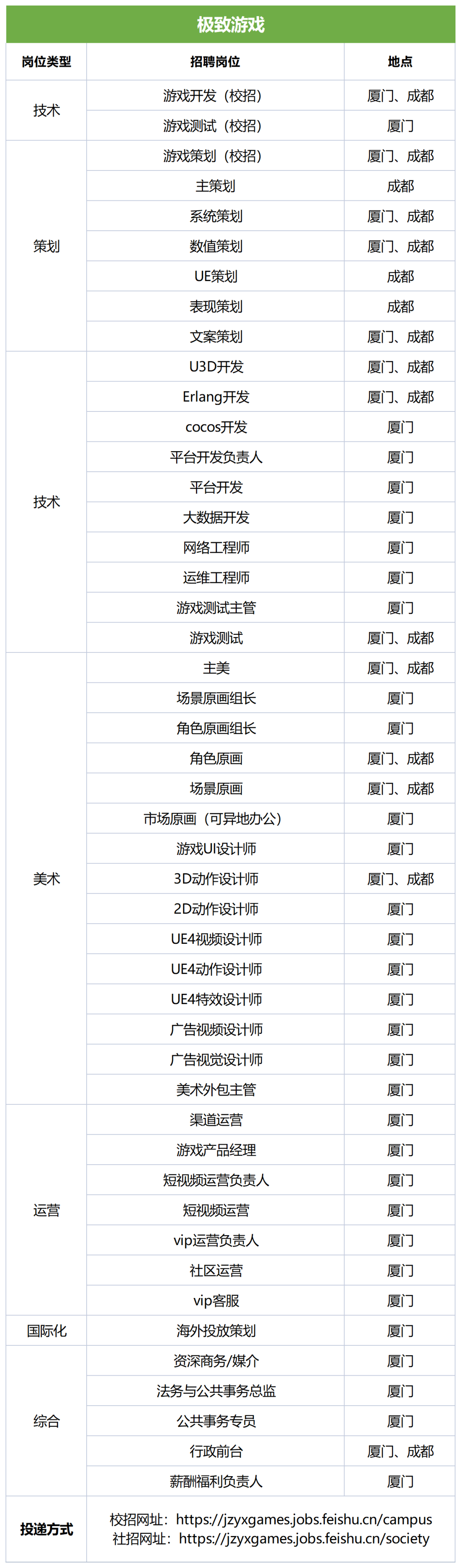 表格内共21个岗位,招聘官网请访问https://rastargame.zhiye.com/Campus