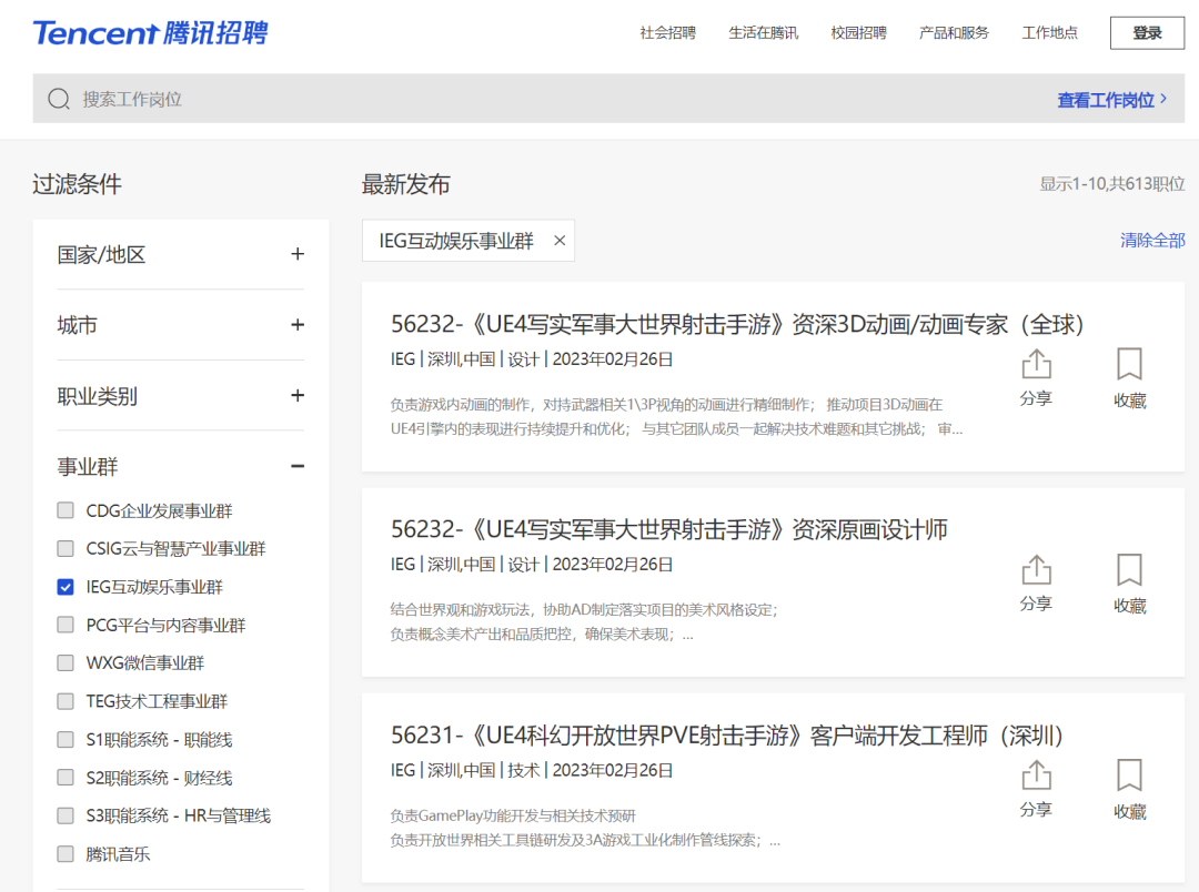 腾讯IEG社招目前有613个岗位,详情访