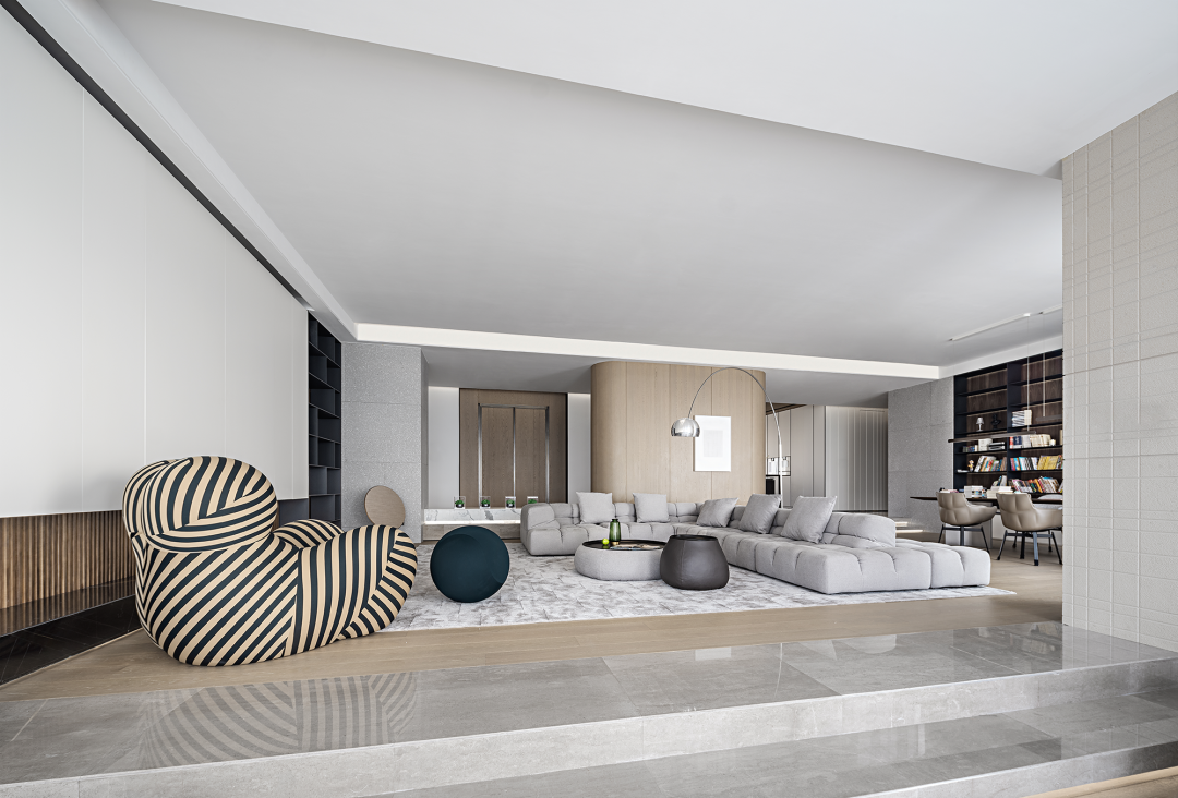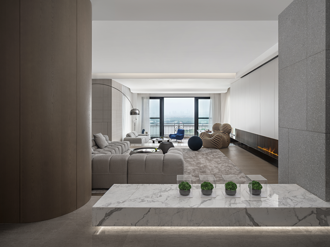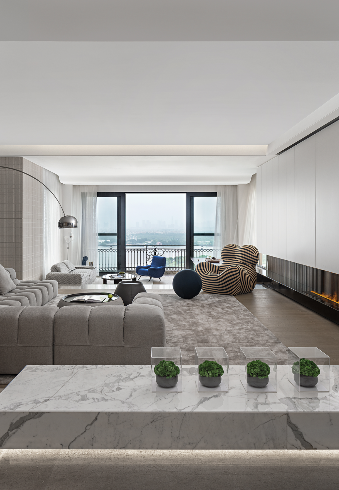 对自然解放和光影引导,将环境与建筑的优势最大化,释放豪宅的风度,空间的流畅性豁然开朗,视野蔓延至整层观景面,肌理在漫溢的阳光下通透生辉,感受到随性的慵懒和治愈的活力。