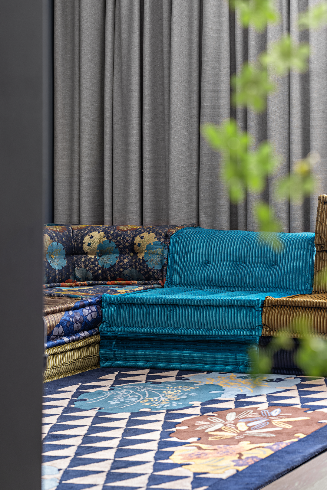 多功能娱乐室实现了居者纯粹的艺术审美,丰富了其对精彩生活无限的向往和热爱的不懈追求,错落有致的沙发形成高低差,不同色块的对撞和融合,不仅勾勒出空间的各同形态,而且让情感的互动和交流得以随时产生。