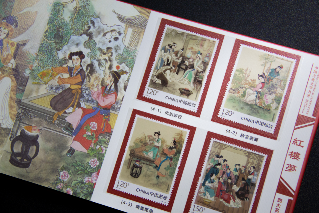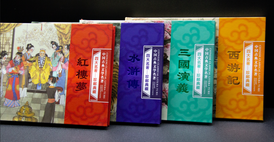但市面上单枚、单套居多,能一次集齐四册,少之又少。而这套就收集了从1989年的《水浒传》特种邮票到2022年新的《红楼梦》特种邮票。