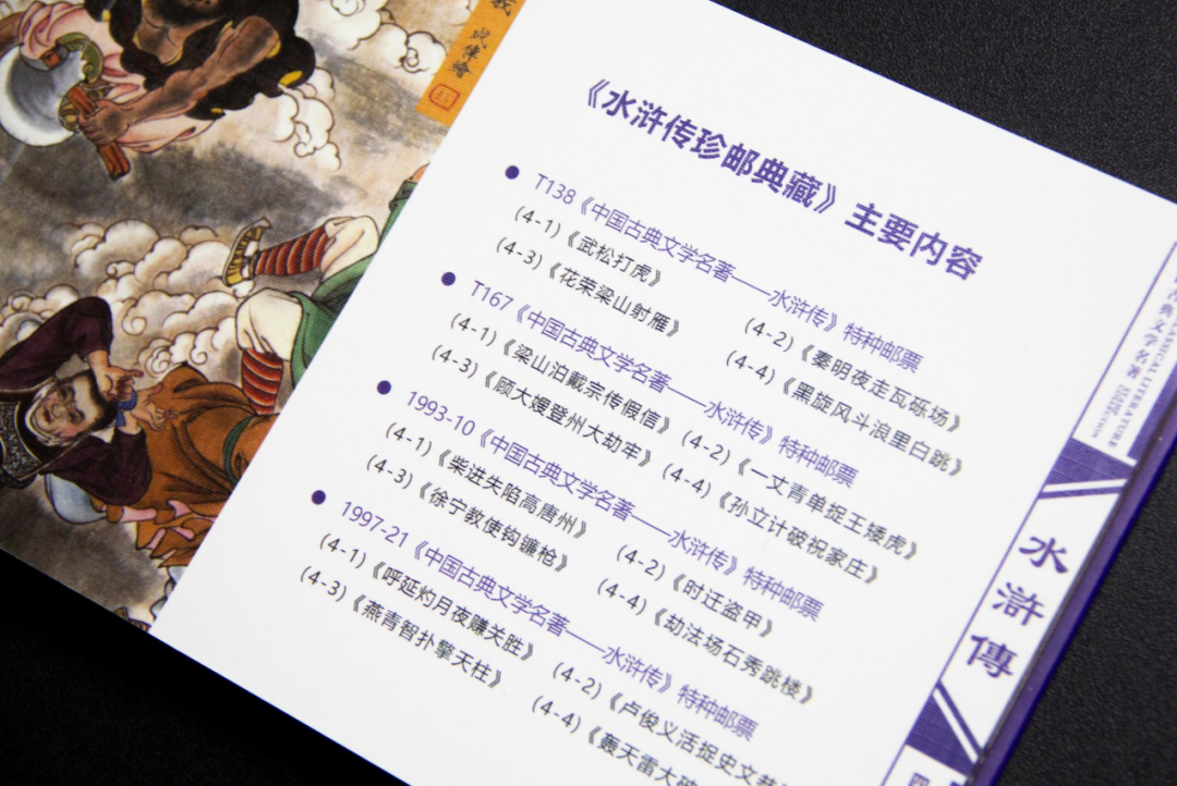 《水浒传》珍邮册共收录16枚珍邮,收录了1989年、1991年、1993年、1997年四组邮票,最早一枚距今已经32年。