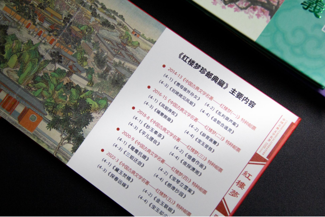 这册收录的,还是“藏头藏尾”的大全册——从2014年到2022年,也就是第一组到收官之作的《中国古典文学名著<红楼梦>》特种邮票,全囊括在其中。