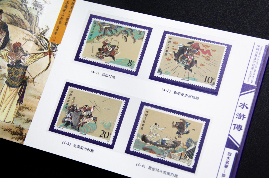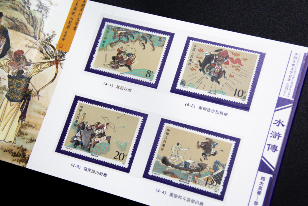 《水浒传》珍邮册以“武松打虎”始,至“轰天雷大破官军”终,包含了水浒传中的重要人物和重大事件,成为波澜壮阔的水浒传缩略图, 是英雄迷收藏的佳选。