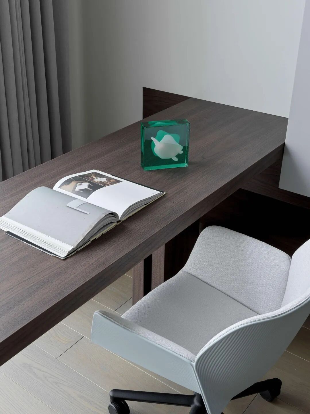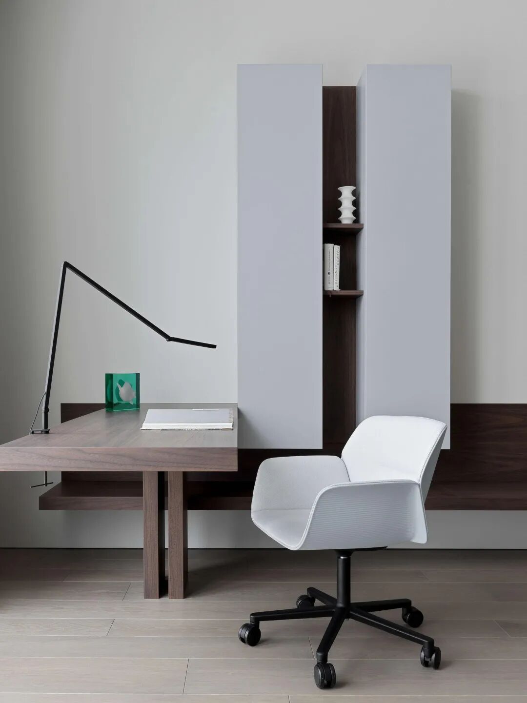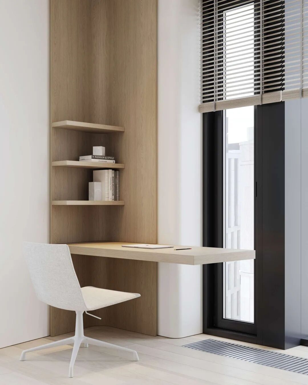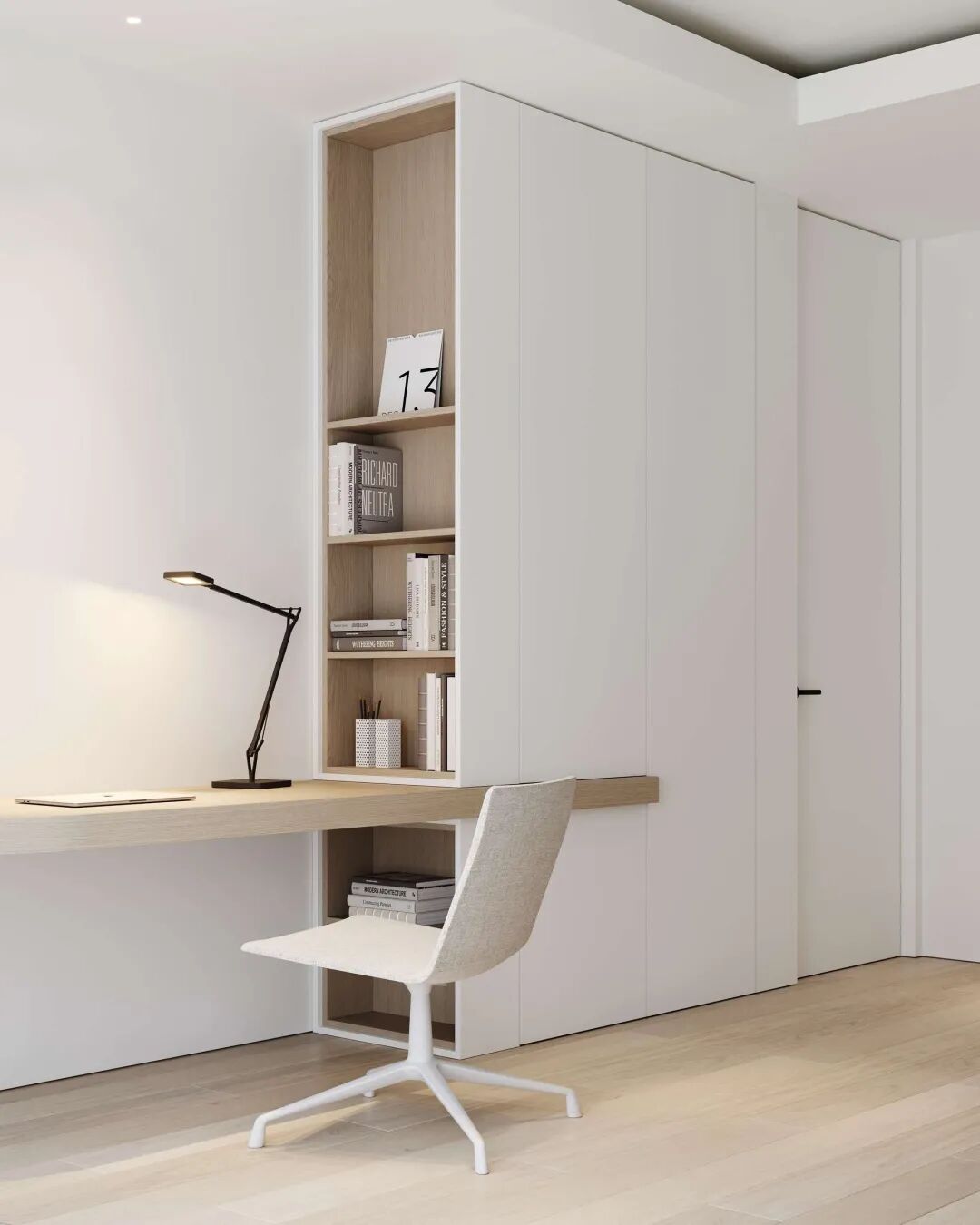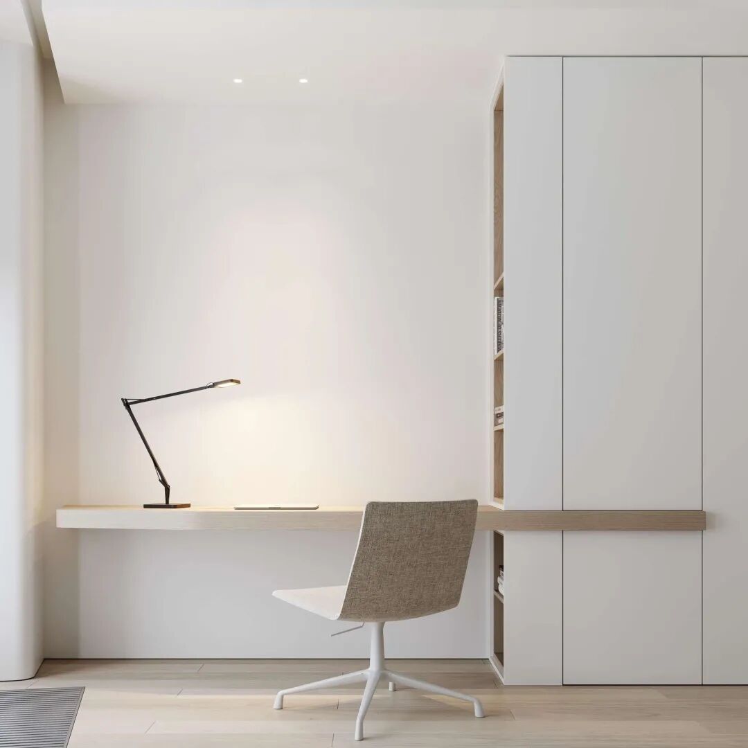卧室里橱柜与书桌完美的结合,每一条线都有一种精确与和谐的感觉。