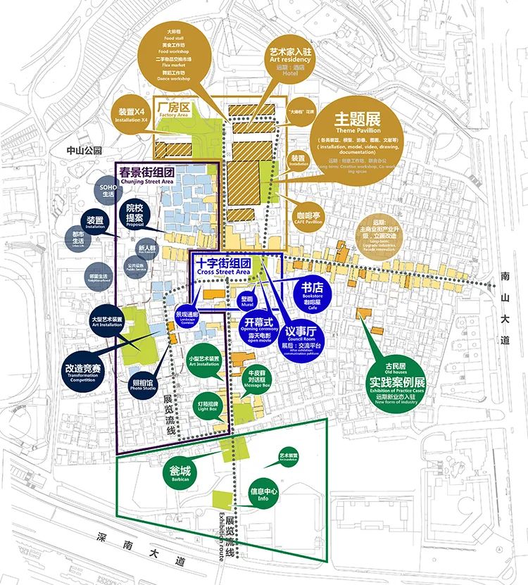 2017年,深港双年展在古城的举办,将建筑与艺术进行了融合。通过对产房、街区、住宅、绿地广场等改造,提升了空间质量。艺术家们多样化的介入,也使这个古老的村落焕发了新的活力。