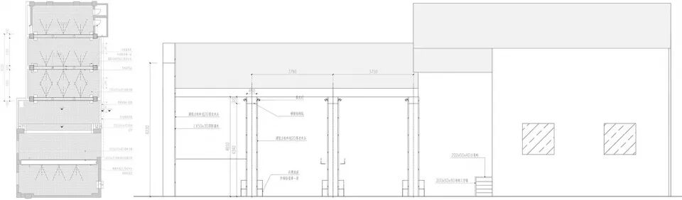 将“抽象网格空间”和“立方像素空间”同当代以及历史空间进行融合,是趣城工作室(ARCity Office)经常采用的设计理念和方法。本项目选择一栋空置老屋进行了实验,在老屋入口处增加了立方像素系统(黑色花纹钢板+透明白色亚克力),并且延伸进建筑内部。由于这个系统是具有可变性和容载性的,类似于一种“建筑基础设施”,因此可以将屏幕、投影、灯光等设备自由安装其中,从而实现在几乎完全不改变建筑原有状态的情况下,包容高密度的媒体信息功能。