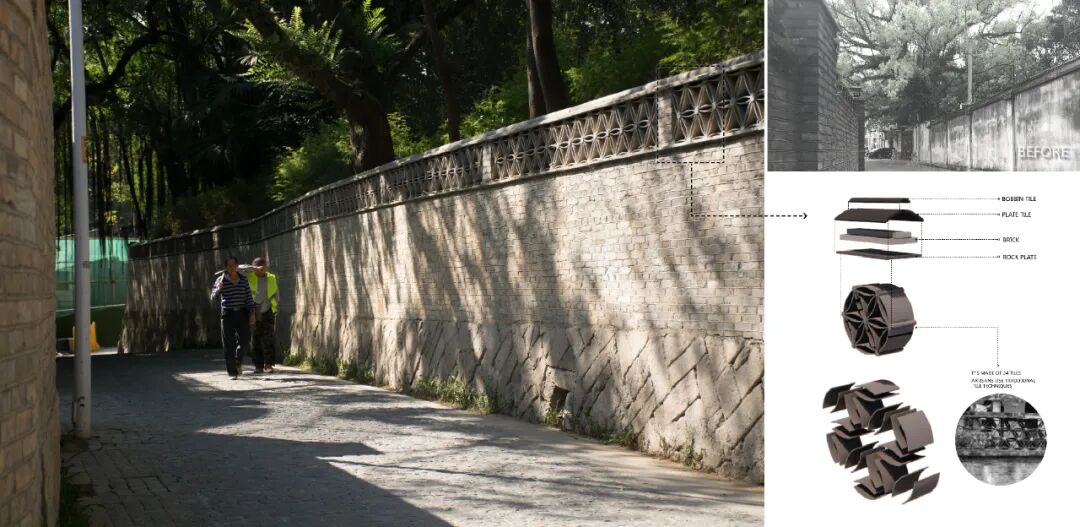 ▼利用废旧木材和青砖创造具有历史质感的融合场景