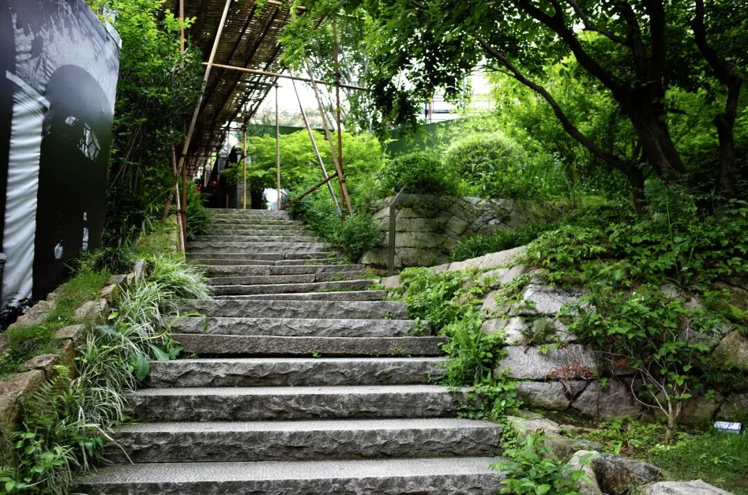 ▼利用公共厕所屋顶顺势设计了大台阶和廊桥系统
