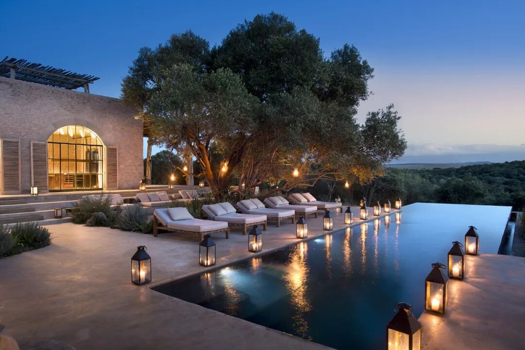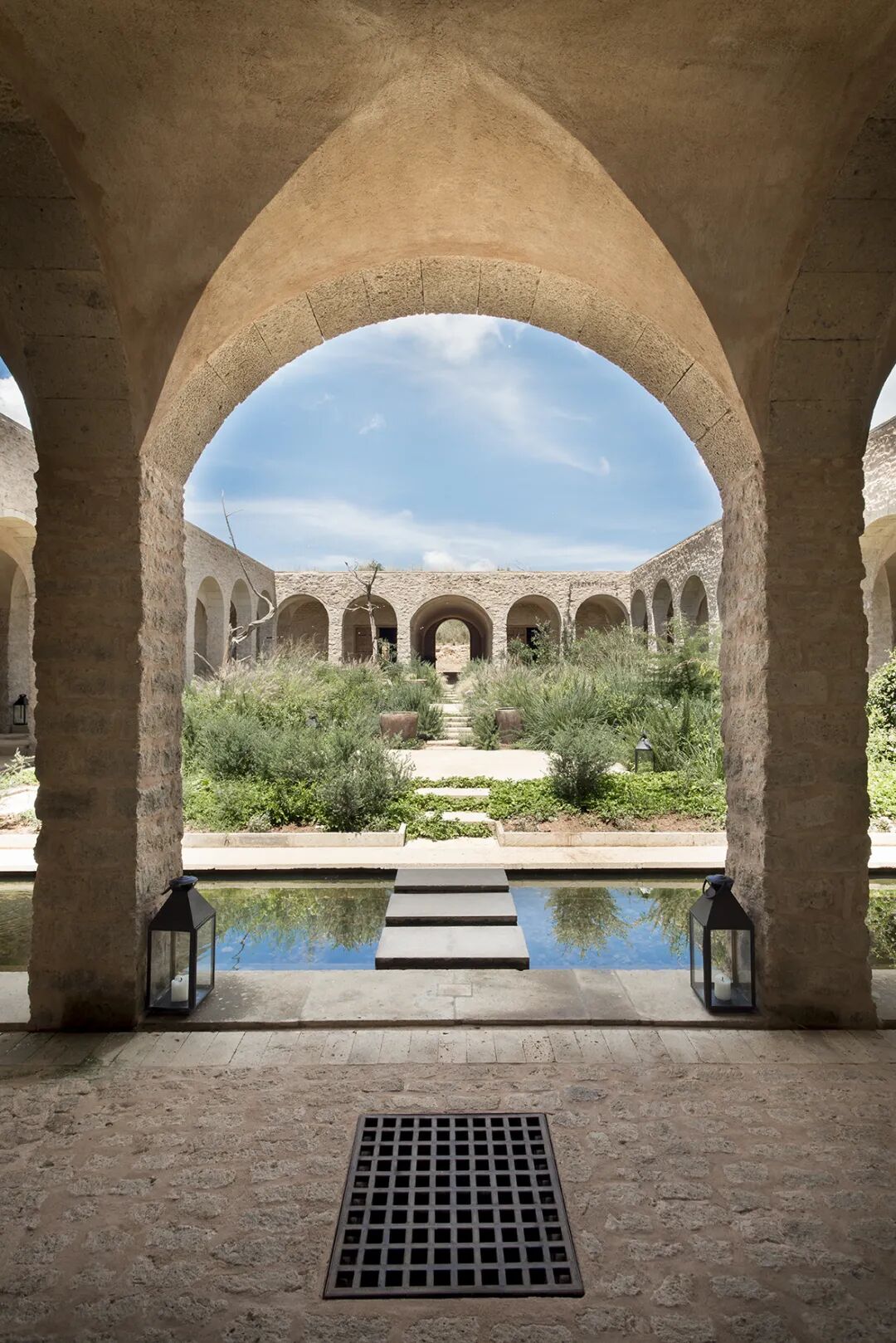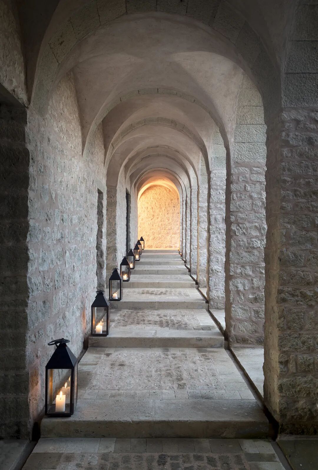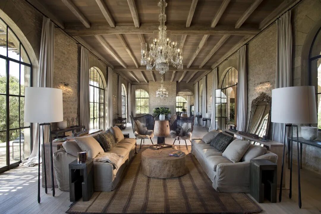 建筑在立面、窗户、走廊等多处都使用了经典的拱形元素,尤其是连续的立面拱门,重现了经典的罗马式建筑风格,其材料由风化的石头构成,营造出了古朴深远的意境,而整体的软装设计呈现出了奢华现代的氛围,两种不同的风格在同一个项目中完成了绝妙的结合。
