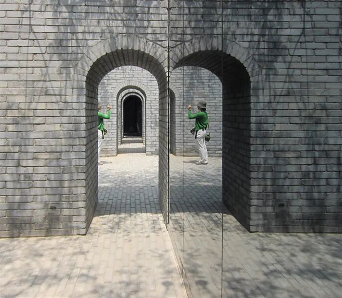 该花园装置全部由3米高的砖墙围合,人们通过开放式走廊的两端进入,穿过走廊的镜面墙反射出的5扇拱门从而进入不同的庭院,其中一些地方还会制造一些镜像或者扭曲的空间,甚至可以通过单向镜观察置身其中的游客,这给人们带来了一种陌生、混乱、奇特的新体验。