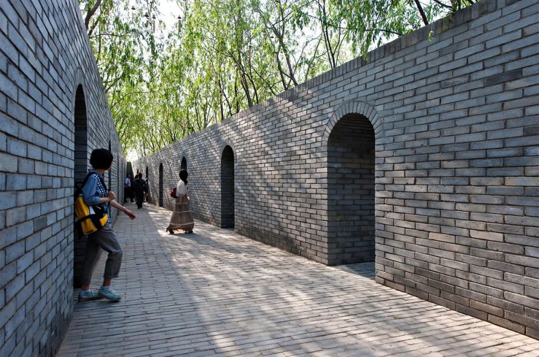 青翠的柳树与坚固的墙壁呼应了自然与城市和谐的设计主题,表达了中国建筑艺术的深远、质朴与包容。