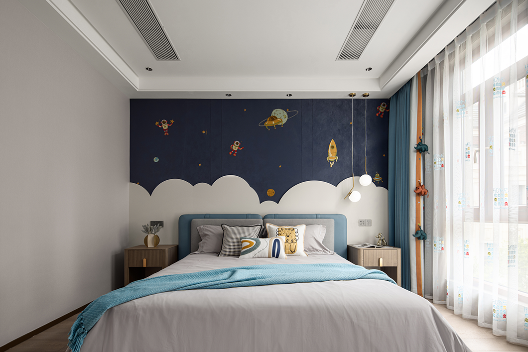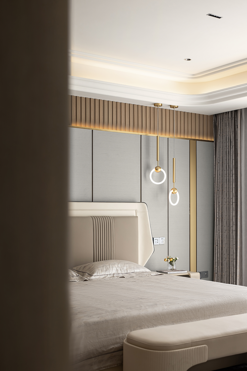 主卧定位简素、温馨的格调,浅色+原木+棉麻元素的组合,是风轻轻扬起纱帘的温柔,而铺设木质地板,让人身心放松,平复繁杂心绪,让内心沉淀,感受时光安然,岁月静好。