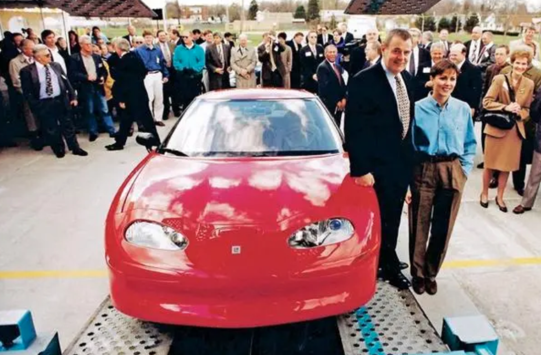 1996年,在史泰龙新片的红毯首映式上,第一辆EV1亮相了,这也是现代意义上的第一款纯电动汽车。