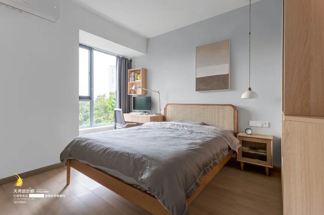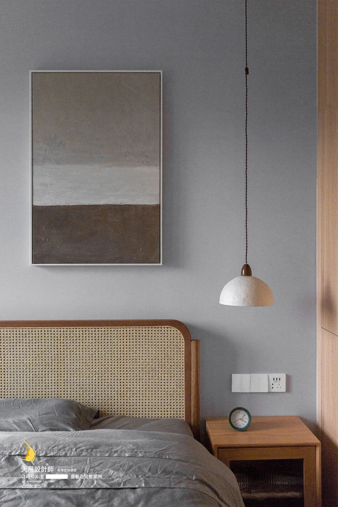 天用设计:主卧用浅灰搭配棕木色,自然材质打造经典的复古风情。