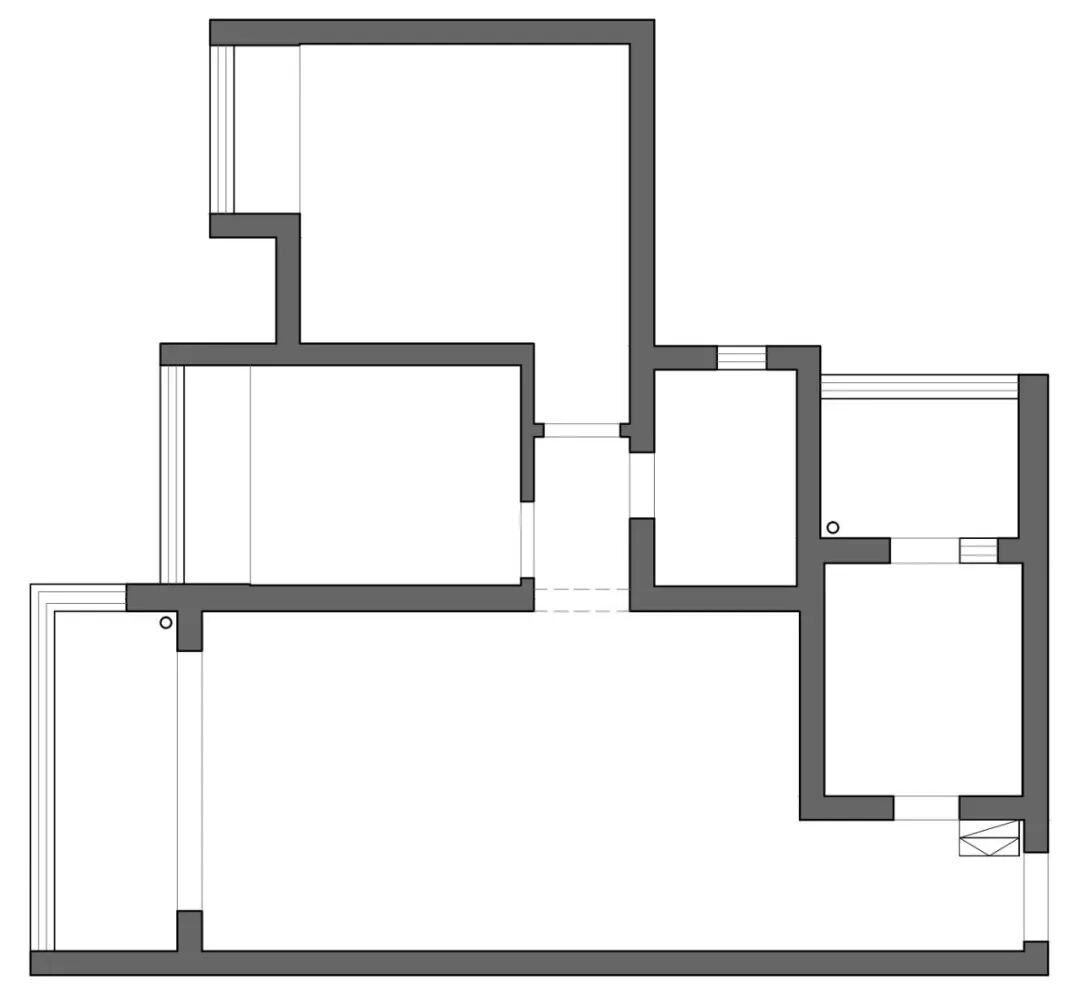天用设计:本案是旧房改造,原有的室内格局方正合理,基本不需做改动,因此只把比较突出的阳角做斜角处理,避免走动时不小心碰撞。
