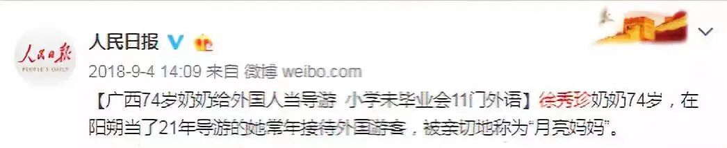 在中国广西桂林的月亮山下,有一位78岁的老奶奶,她从50岁开始自学外语,如今已经掌握了11门语言,与来旅游的外国友人沟通无阻。