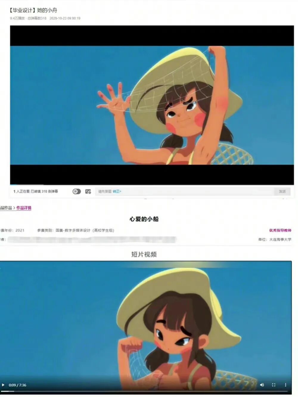2019年在b站上发了个自己大学毕业设计动画短片