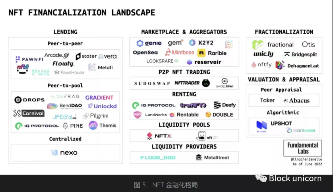 综上来看,NFT更应该被视为区块链行业的一项底层基础设施,以去中心化和唯一性作为根本支撑,从而催生出更为多样化的NFT项目。目前的NFT金融化版图可以参考下图:
