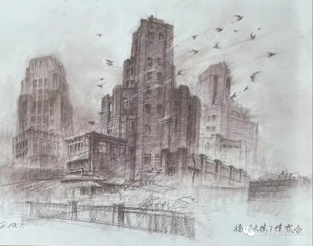 当时马路上的人还不是很多,当我们走回到福州大楼的时候,看到了正在写生工部局大楼的魏先生,闲聊一会后,魏先生很热情地邀请我们去他福州路的家里坐坐,也欣赏了他很多写生的作品,这些建筑都和他小时候的经历有关。因为有着共同的兴趣爱好,久而久之我们也成为了好友,这次也很荣幸能邀请到魏先生,和大家分享关于他住在福州大楼65年来的些许回忆。