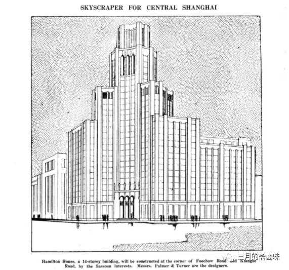 汉弥尔登大厦最初的设计效果图--图片来源于1929年6月29日的《字林西报》