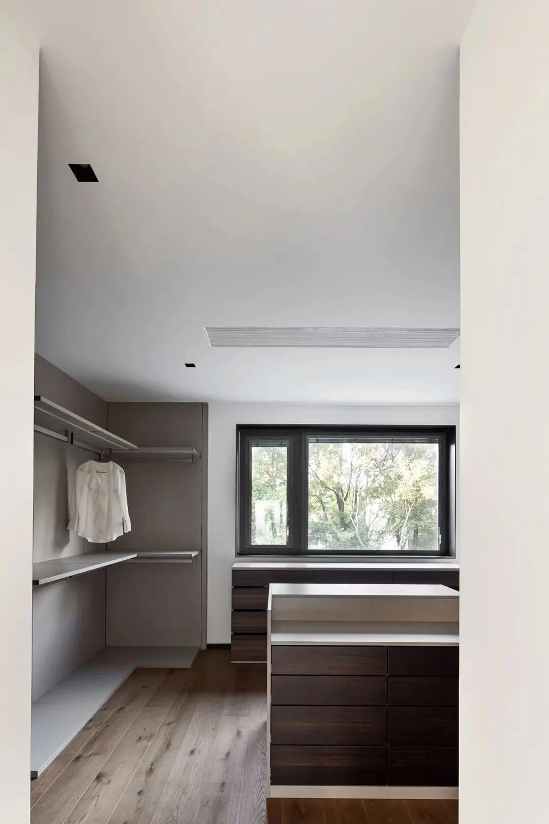 设计师在每个空间最大限度地开窗,召唤光线的参与,空间绕光而行,自然通透。更有顶部倾泻而下的光,裁剪出不同的空间形态,以光影重塑造型。