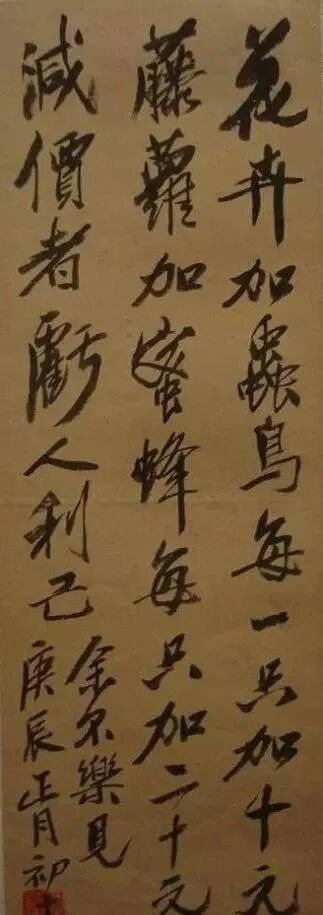 花卉加虫鸟,每一只加10元,藤萝加蜜蜂,每只加20元,减价者,亏人利己,余不乐见。庚申正月初十日