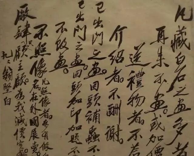 凡藏白石之画多者,再来不画,或加价。送礼物者,不答,介绍者,不酬谢。已出门之画,回头补虫不应;已出门之画,回头加印加题不应;不改画,不照像,凡照像者,多有假白石名,在外国展卖。假画场肆,只顾主顾,为我减价定画,不应。九九翁坚白