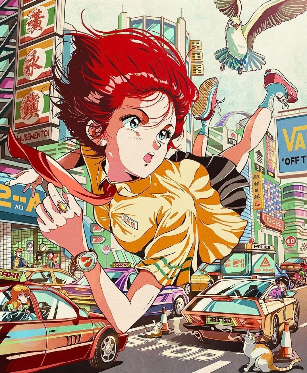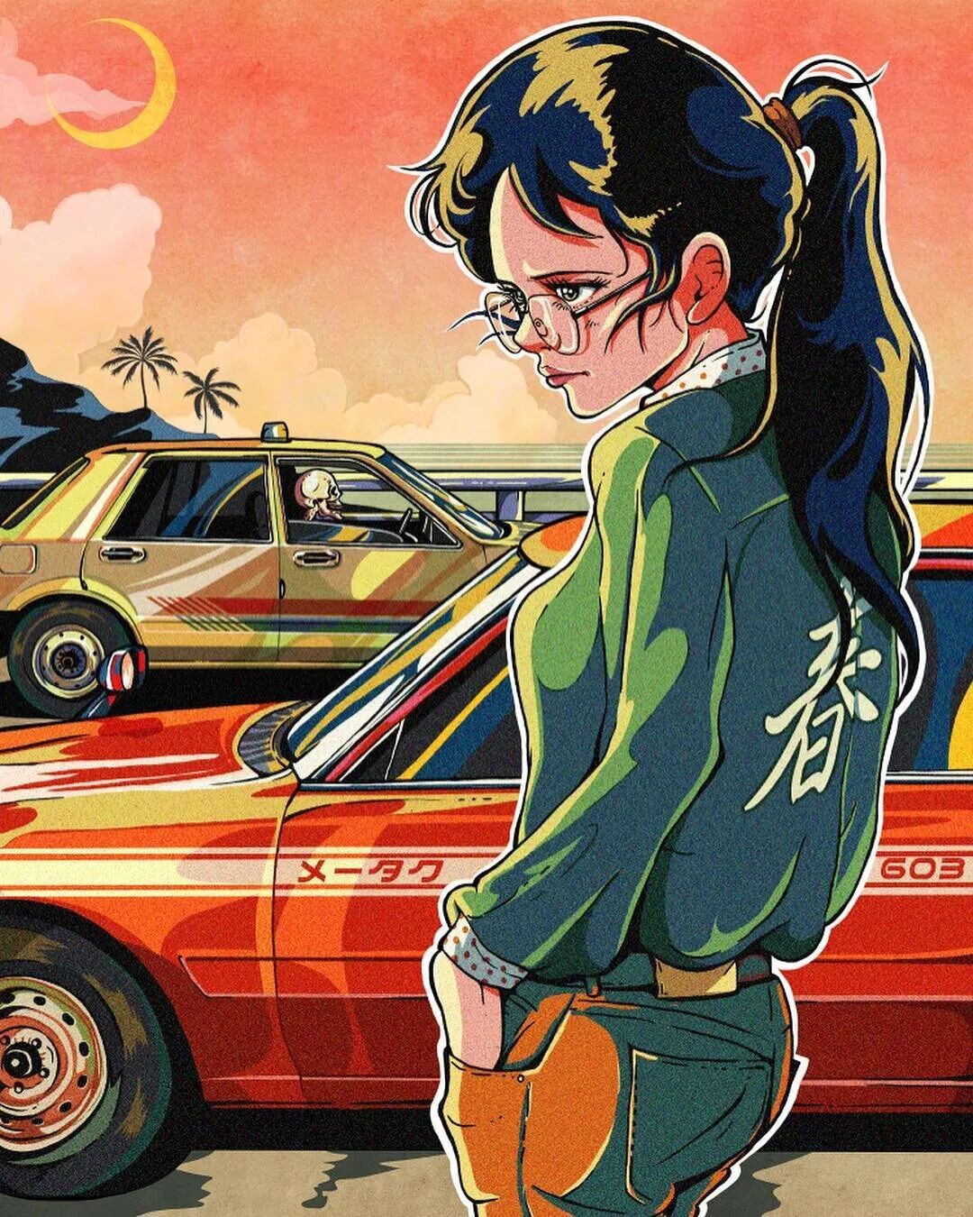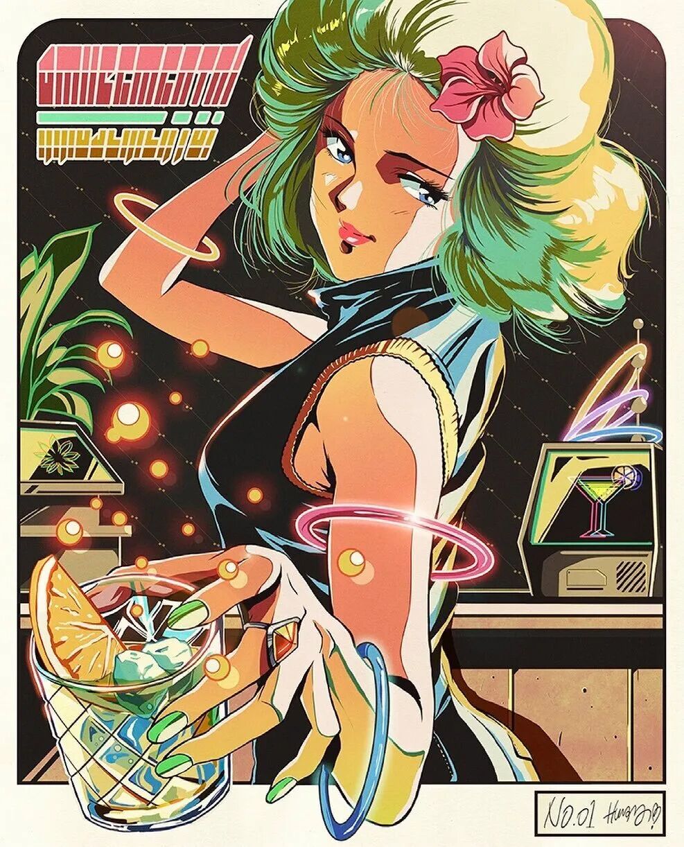 他的作品用色丰富画风复古,清晰的线条和明暗过渡方式都带有80年代独特的动漫风格,人物造型充满了活力,富有感染力的神情直接传达出作品整体情绪,一眼就抓住了大家的眼球,带有一种跨越年代的流行美感,让人看着作品就不自觉联想起上世纪那些纯粹的亮眼美人们。