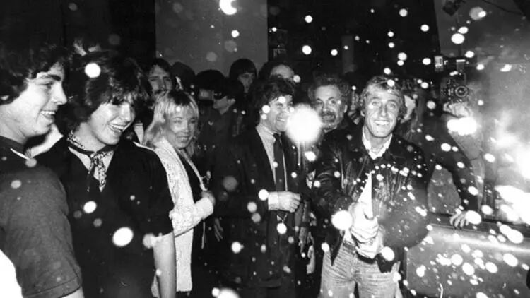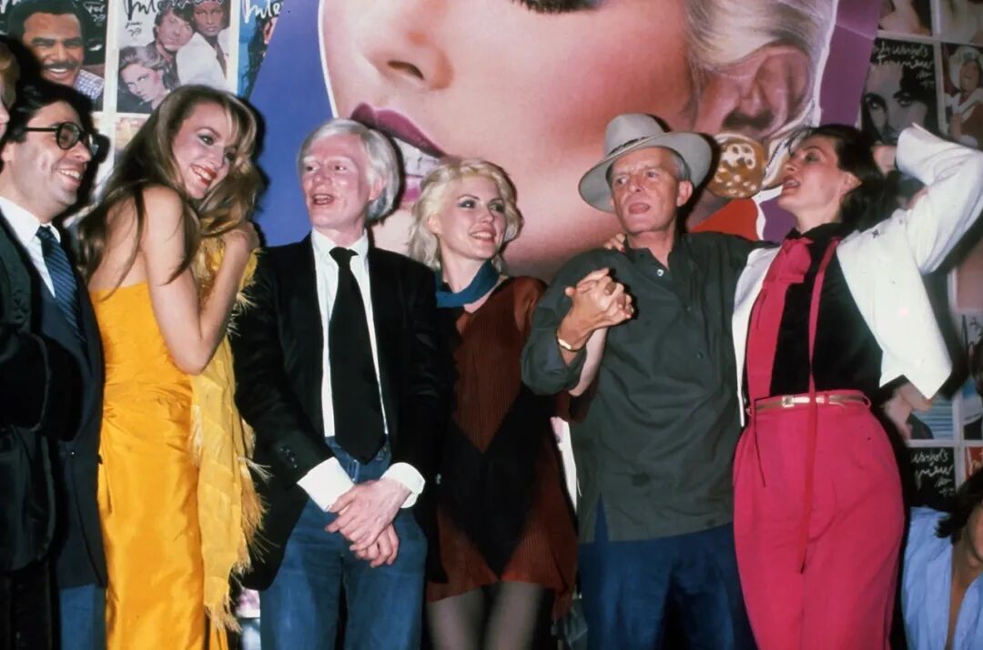 众星云集的Studio 54,左起第二依次为:杰芮·霍尔、安迪·沃霍尔、黛比·哈利、杜鲁门·卡波特和帕洛玛·毕加索