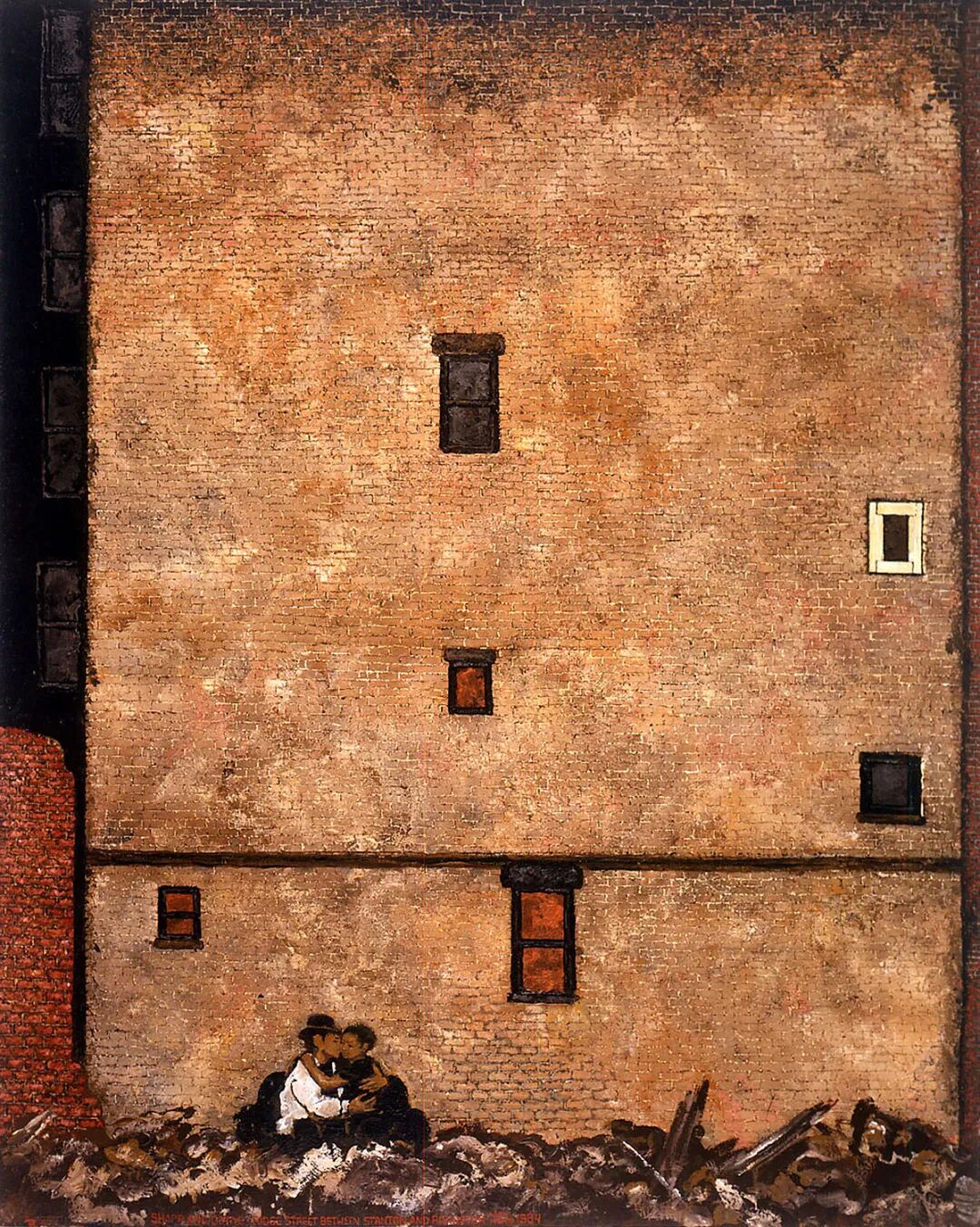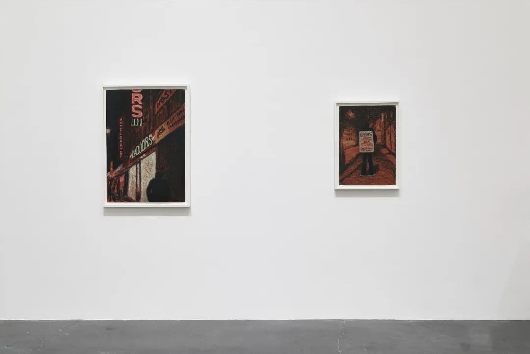 简·迪克森 (Jane Dickson) 笔下的夜景流露出爱德华·霍珀式的幽闭,但粗粝的油画棒线条和躁动不安的红色勾勒出的霓虹灯、酒店与夜行人组成的显然是一个更为罪恶、危险和阴郁的曼哈顿;黄马鼎 (Martin Wong) 时常将标志性的红砖建筑、街道、手势符号和诗歌杂糅在一起,创造出反映多族裔、语言与文化的绘画,严酷无情的楼宇与人物之间的浪漫关系构成其画作中强烈的张力; 大卫·沃纳罗维奇 (David Wojnarowicz) 以一种拼贴式的美学将现代化的产品、原住民图腾、漫画和末日意象戏剧性地并置,戏谑地展示了文明进程及当代生活的残酷性;凯利·詹金斯 (Kiely Jenkins) 、克里斯蒂·拉普 (Christy Rupp) 与帕博·克罗 (Papo Colo) 则聚焦城市排水系统和化工原料对水道的污染,光鲜的城市下游是污秽和飘满垃圾的水道,这也是纽约阶级化的隐喻。